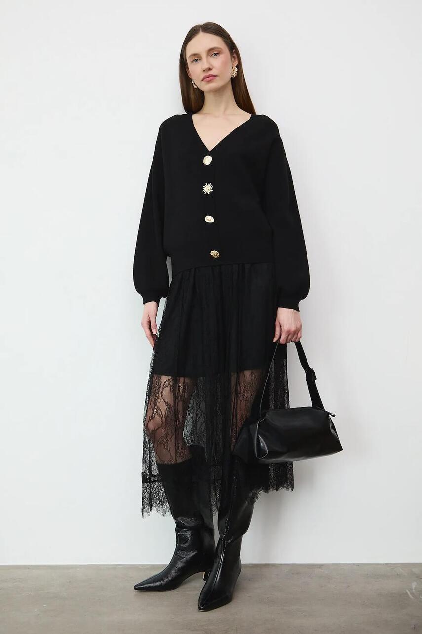 Розкльошений фасон. - Резинка в поясі. - Модель виготовлена з мереживного матеріалу. - Додатковий шар матеріалу у вигляді підкладки. - Декоративне оздоблення. - Квітковий візерунок.