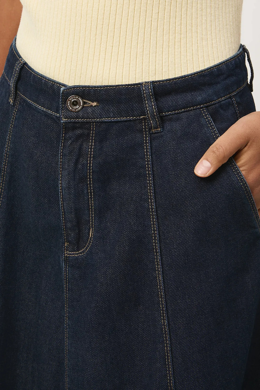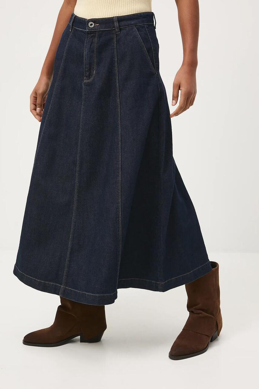 Розкльошений фасон. - Талія regular. - Застібається на гудзик і блискавку. - Дві прорізні бічні кишені. - Декоративне прострочування. - Модель довжини міді.