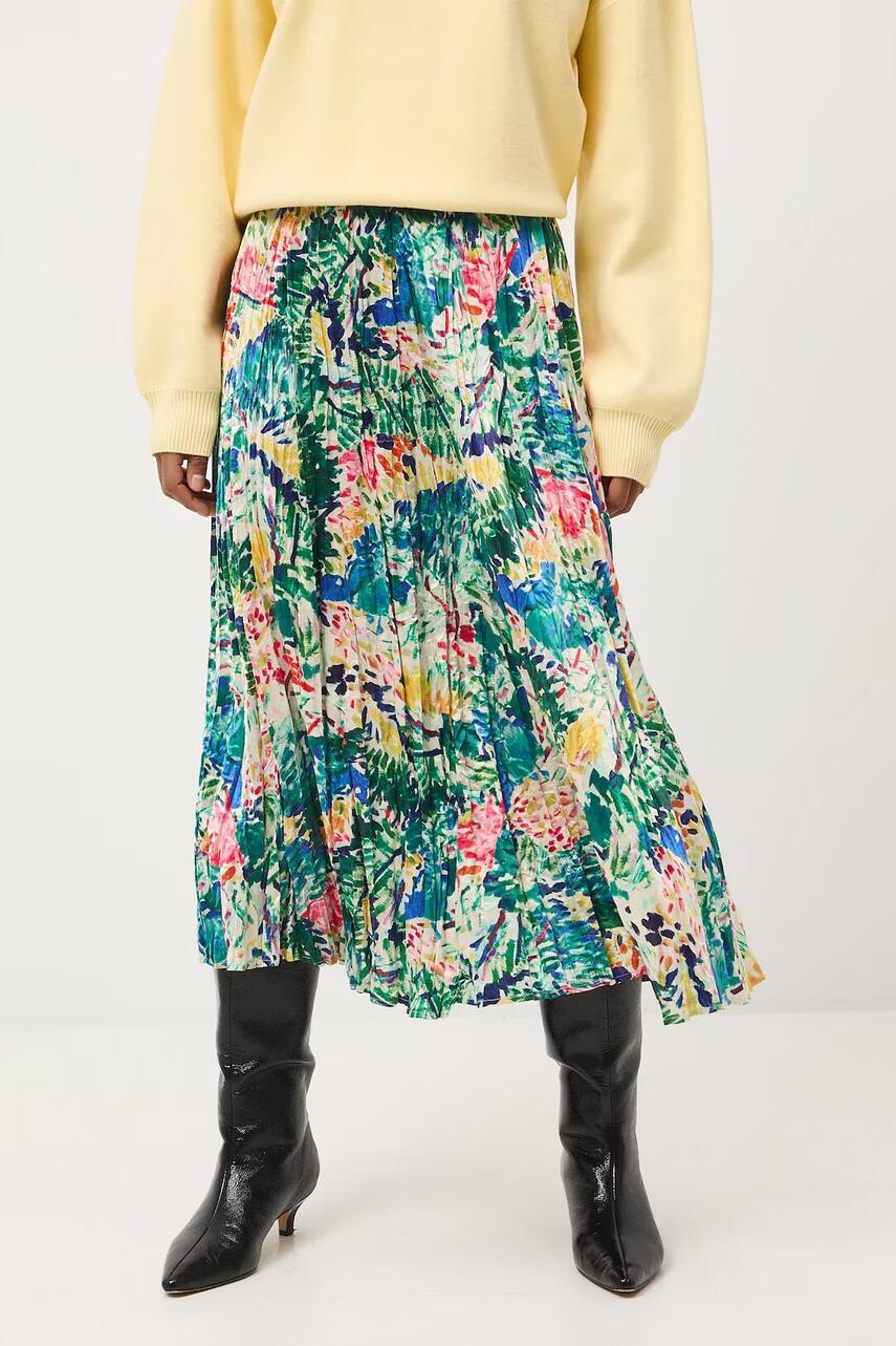 Розкльошений фасон. - Регулярний крій з еластичною стрічкою на талії. - Плісирований матеріал. - Розташування візерунка може відрізнятися на кожному виробі. - Модель довжини максі.
