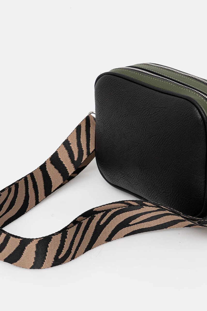 Середнього розміру сумочка з колекції Medicine. Застібна модель виготовлена зі штучної шкіри.