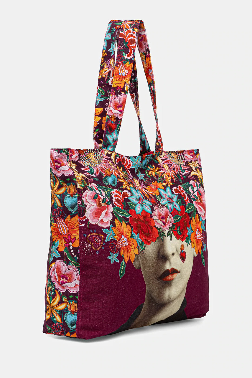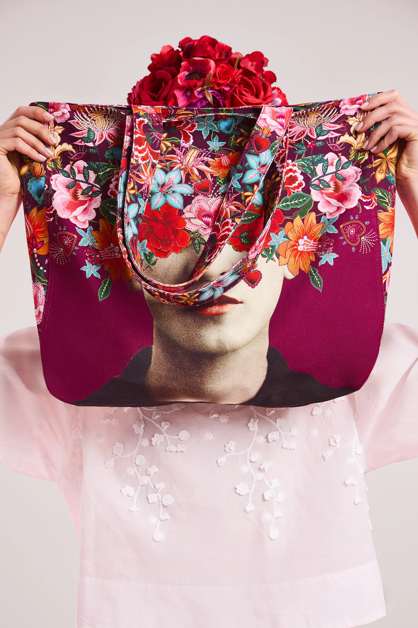 Велика сумка-шопер зі спеціальної колекції Frida. Застібна модель виконана бавовняного матеріалу.