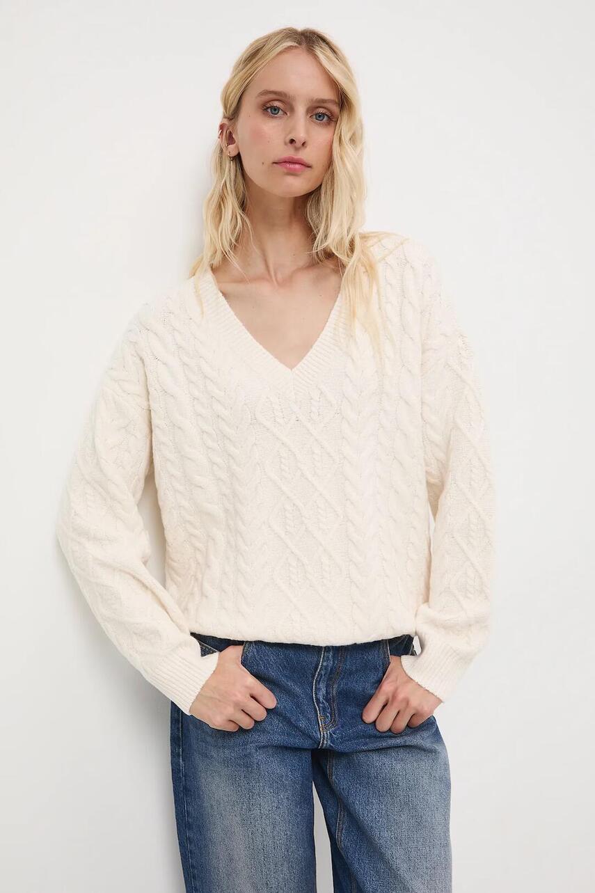 Светр з колекції Medicine. Модель з V-подібним вирізом виготовлена з фактурного трикотажу.
