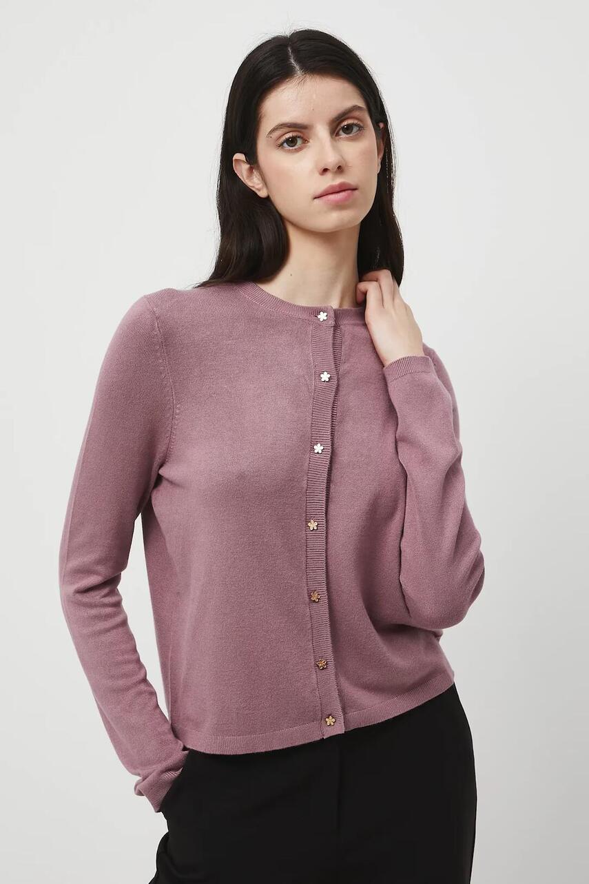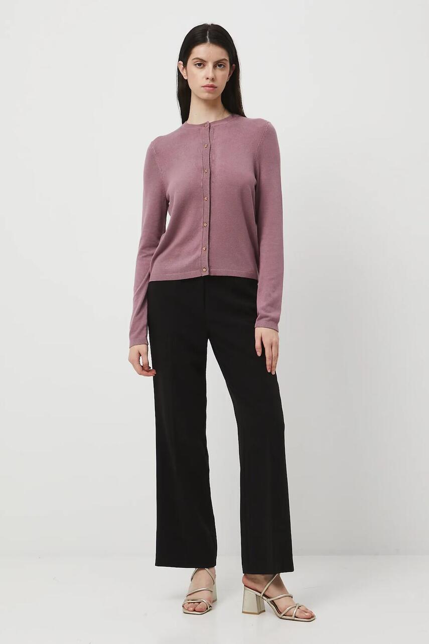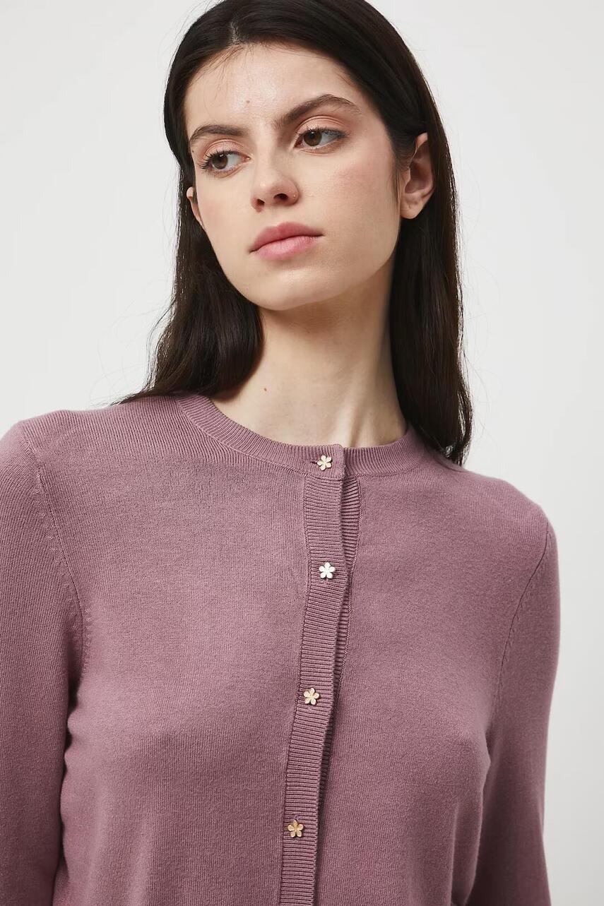 Крій regular. - Довгий рукав. - Круглий виріз. - Застібується на ґудзики. - Декоративні гудзики. - Оздоблення у вигляді стяжки. - Гладкий трикотаж.