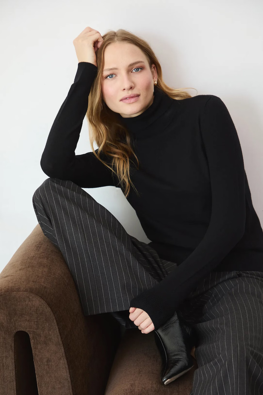Крій regular. - Довгий рукав. - Модель з гольфом. - Оздоблення у вигляді стяжки. - Гладкий трикотаж.