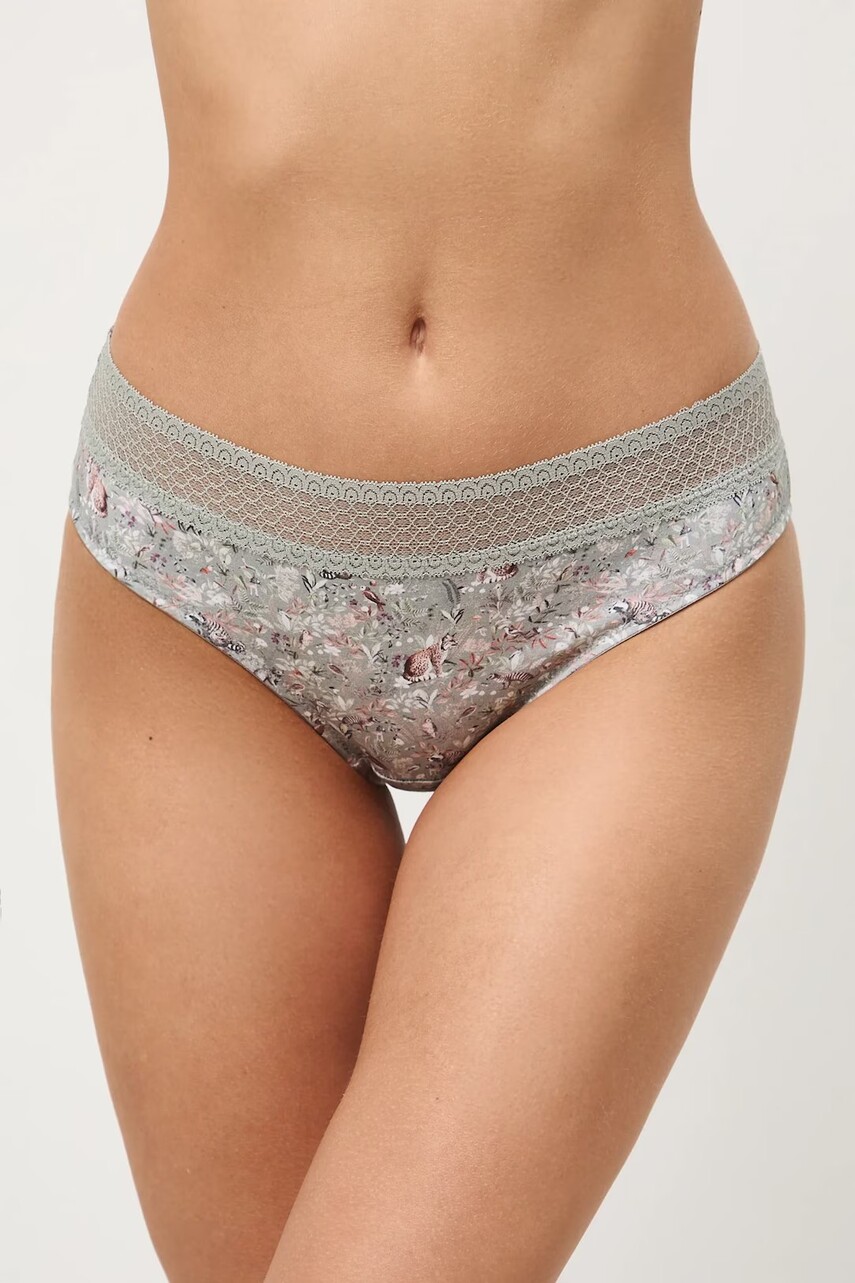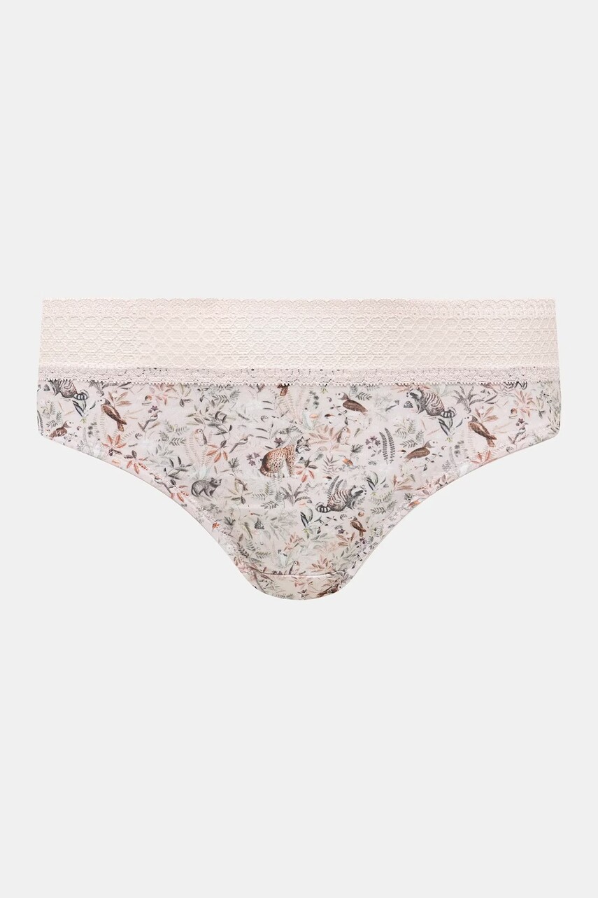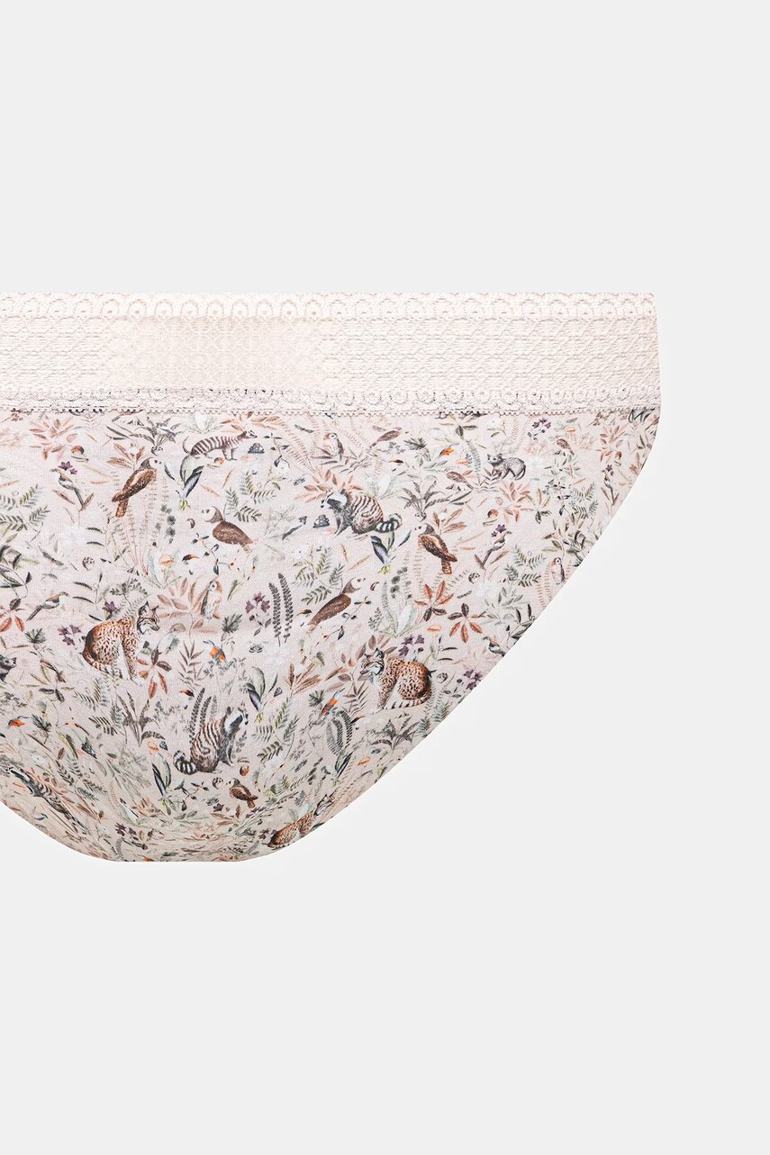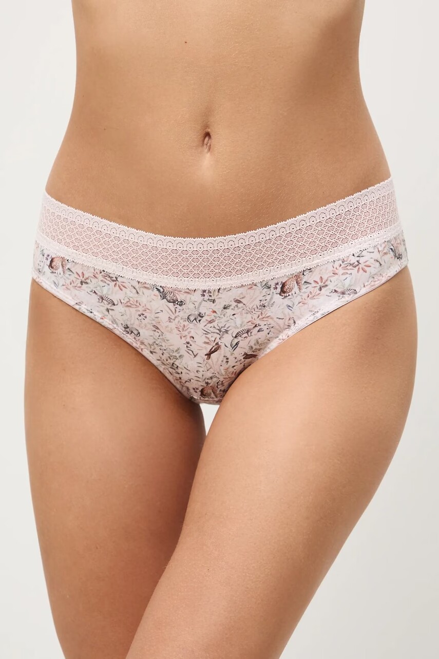 Кількість штук у наборі: 3. - Модель зі звичайною посадкою. - Еластична, мереживна стрічка на талії. - Бавовняна вставка в зоні промежини для більшого комфорту. - Дизайн з квітковими та тваринними мотивами. - Розташування візерунка може відрізнятися на кожному виробі.