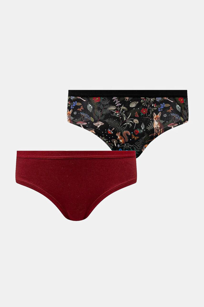 Кількість штук у наборі: 2. - Модель зі звичайною посадкою. - Еластична резинка в поясі. - Бавовняна вставка в зоні промежини для більшого комфорту. - Гладкий трикотаж. - Дизайн з квітковими та тваринними мотивами. - Розташування візерунка може відрізнятися на кожному виробі.