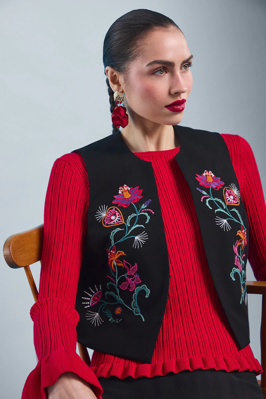 Жилет з колекції Medicine. Модель виготовлена з тканини з декоративною вишивкою.