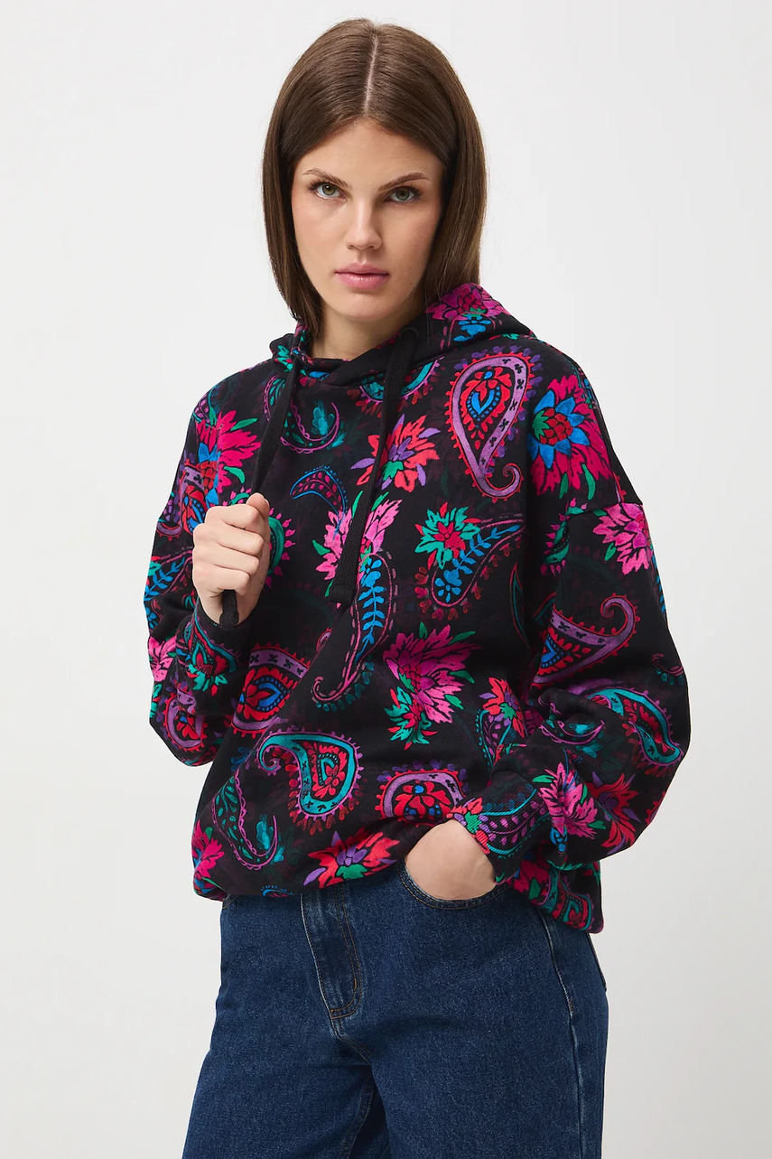 Фасоны relaxed. - длинный рукав. - заниженная линия плеч. - капюшон со стяжкой. - прорезные карманы. - отделка в виде стяжки. - узор paisley.