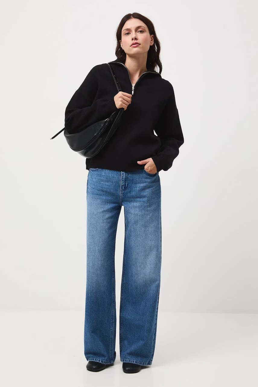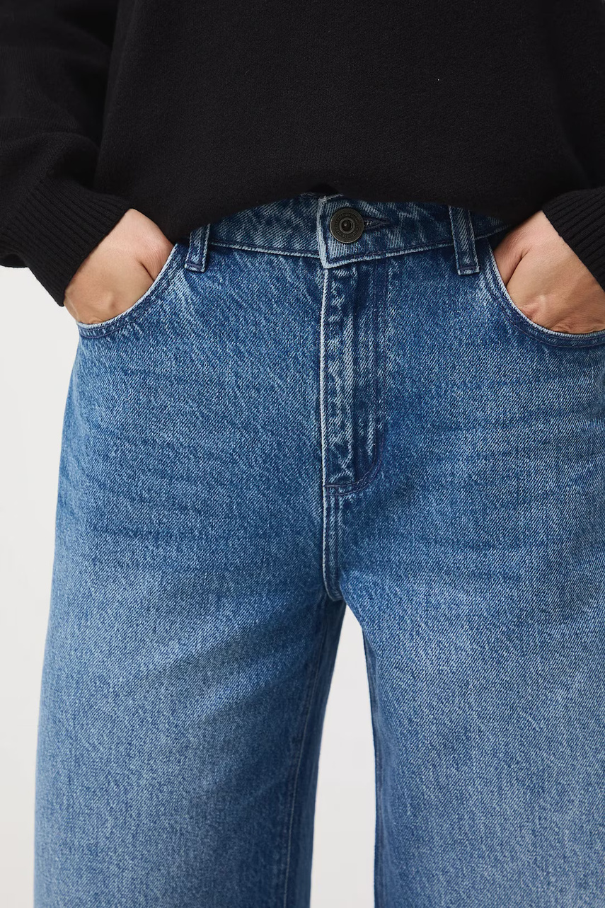 Фасон wide leg – джинсы, несколько приталенные на бедрах, с характерной широкой штаниной, постепенно расширяющейся от талии до низа. Такой крой подчеркивает линию талии, а свободный низ позволяет легко двигаться.