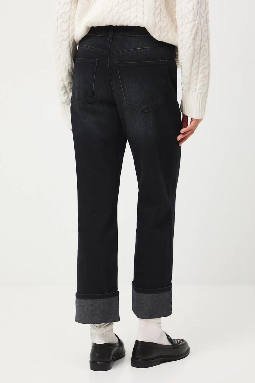 Модель с заниженной талией и застежкой на пуговицы и молнию. - прорезные карманы. - деним с декоративными потертостями.