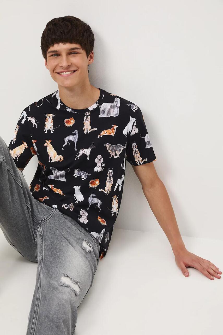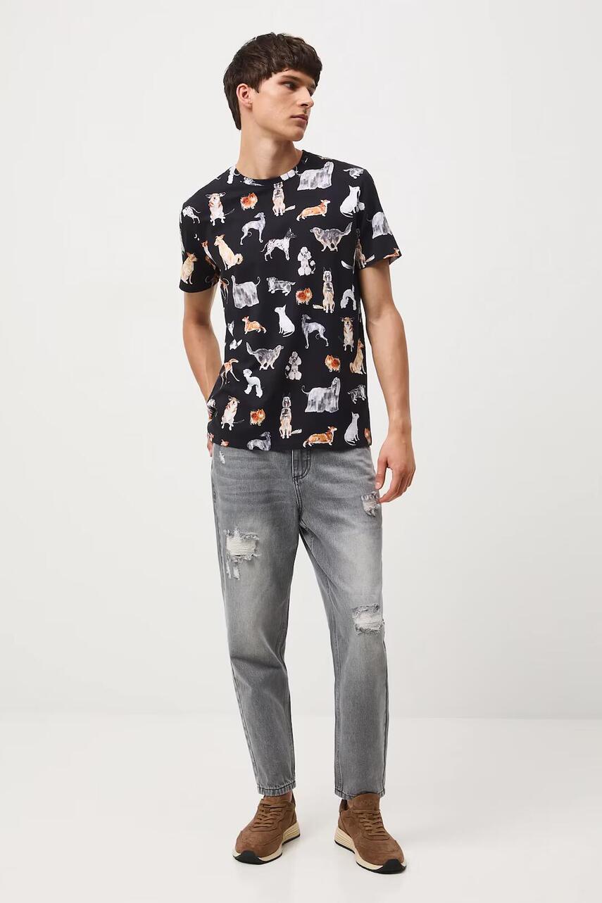 Крой regular. - короткий рукав. - круглый вырез. - узор с анималистическим мотивом.