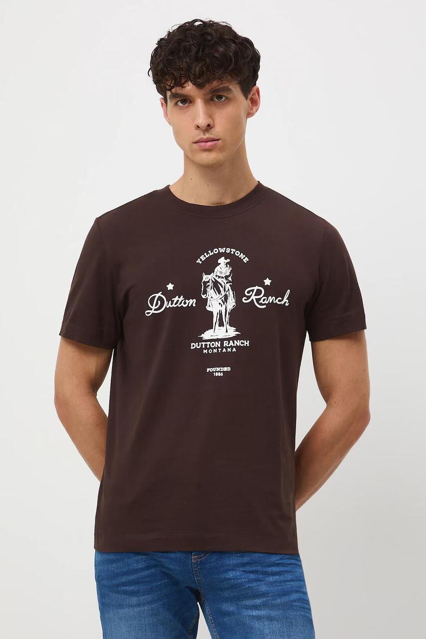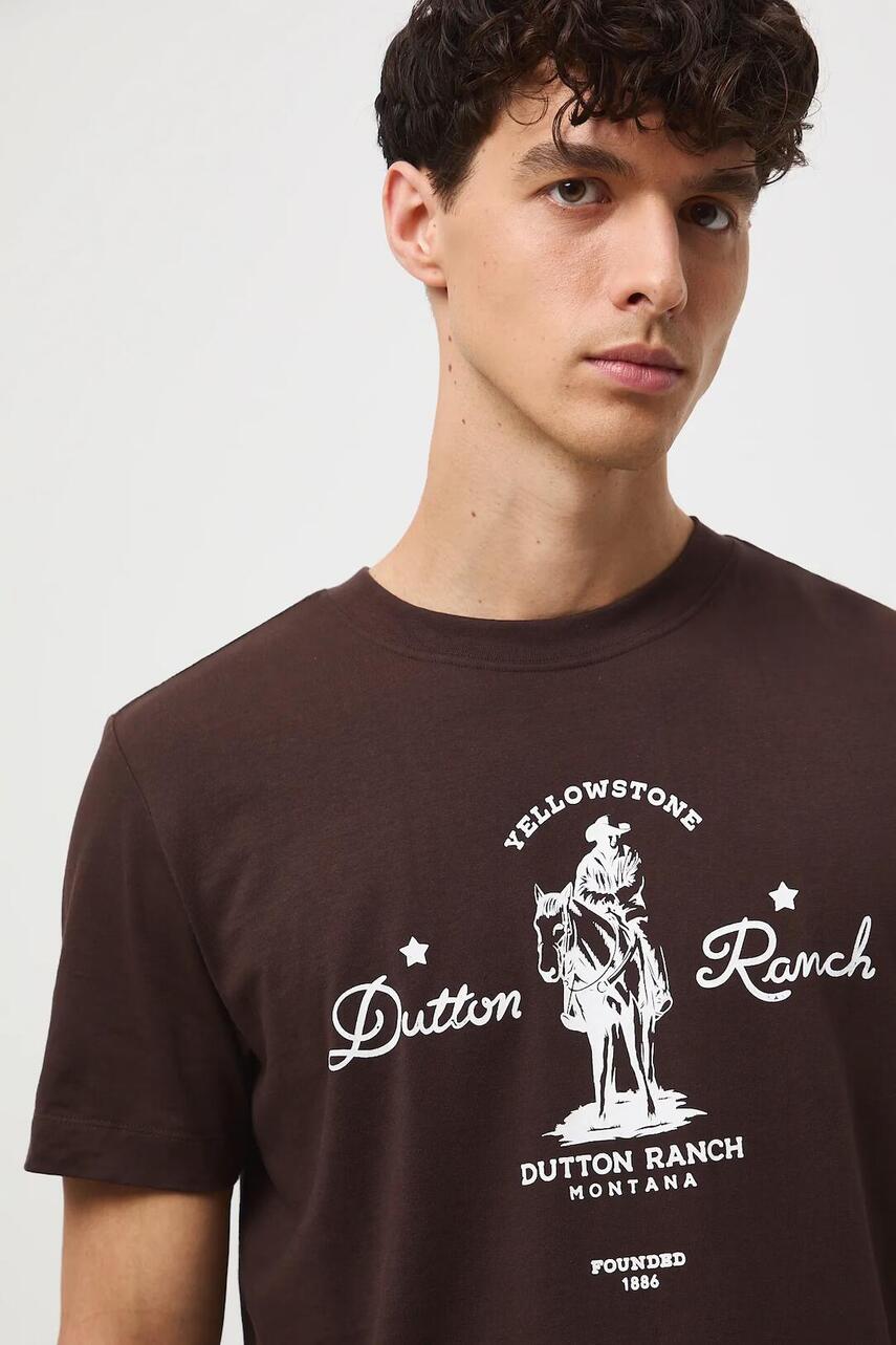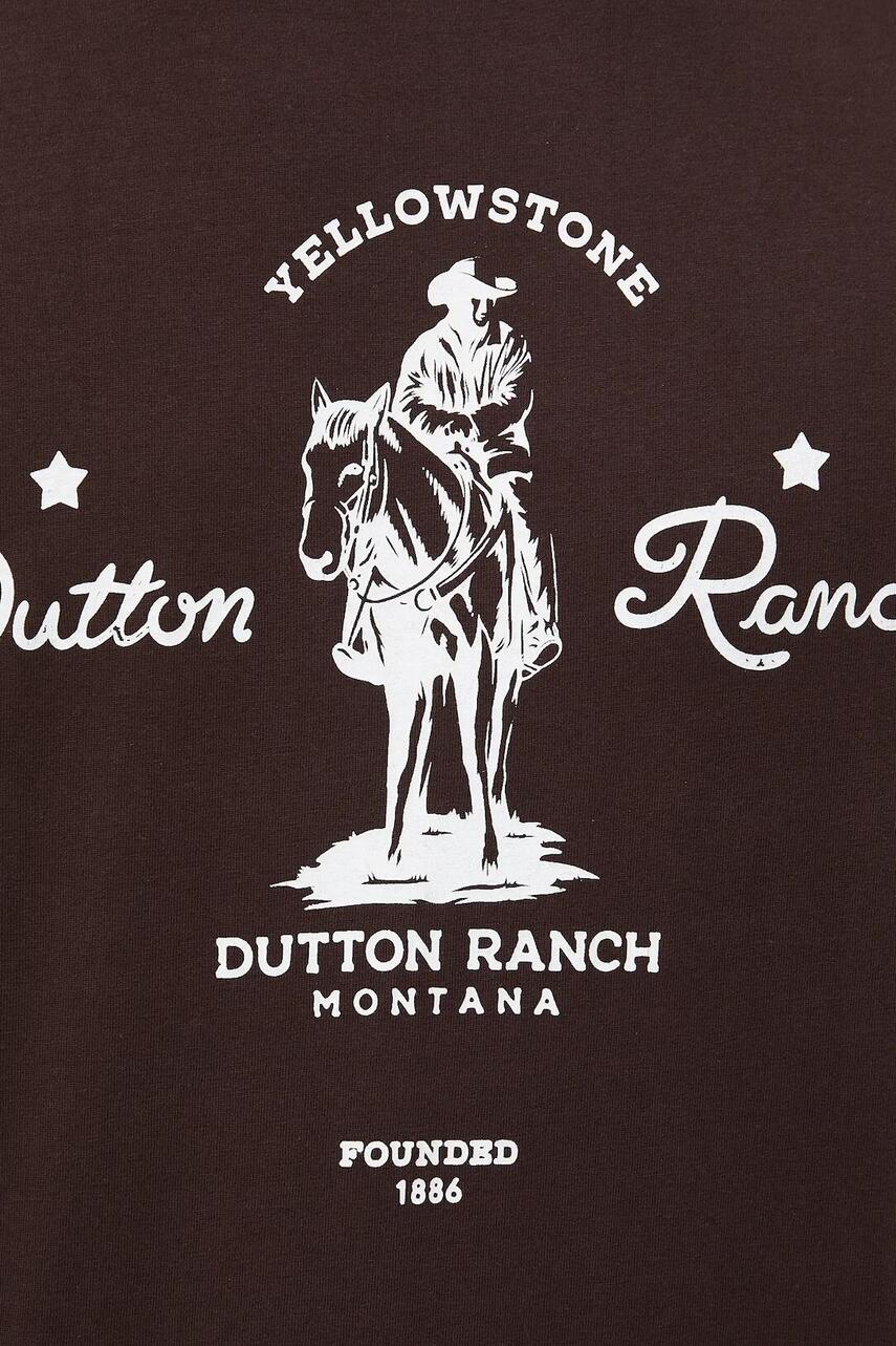 Крой regular. - короткий рукав. - круглый вырез. - модель с принтом на груди. – На передней части напечатан текст: Yellowstone, Dutton Ranch, Montana, founded 1886.