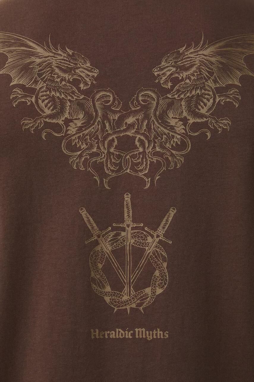 Крой regular. - короткий рукав. - круглый вырез. - модель с принтом на груди и спине. - На задней части напечатан текст: Heraldic Myths. - принт с животным мотивом.