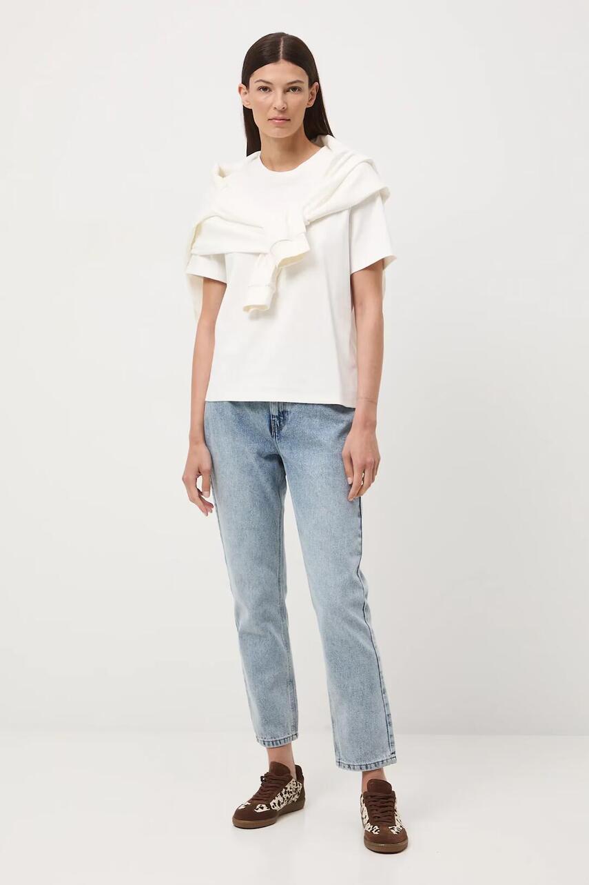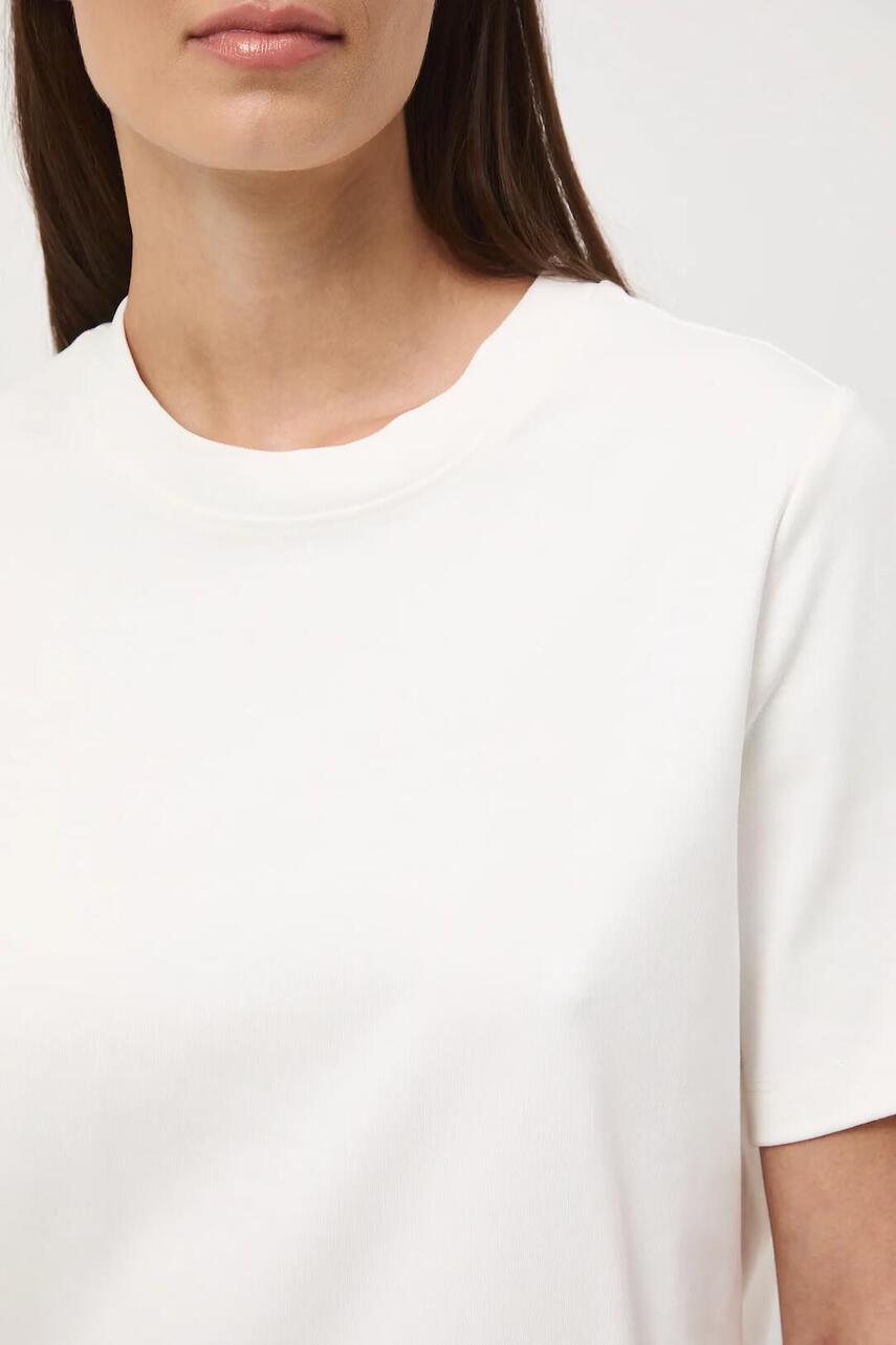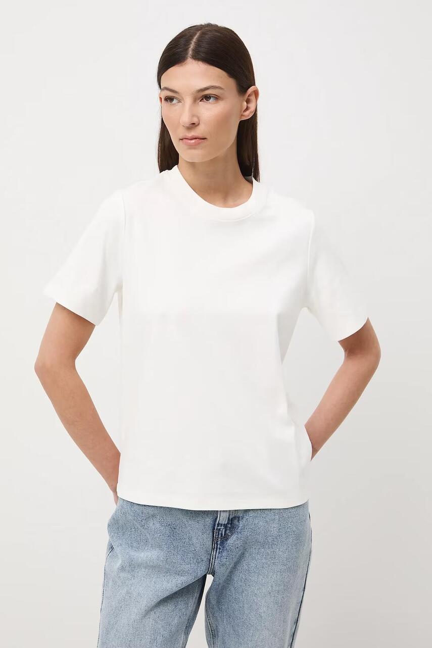 Крой regular. - короткий рукав. - круглый, ребристый вырез. - хлопковый трикотаж interlock с плотным переплетением.
