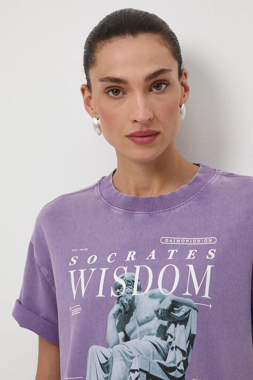 Крой oversize. - короткий рукав. - заниженная линия плеч. - круглый, ребристый вырез. - модель с принтом на груди и спине. - декоративные швы. - ткань с эффектом постиранности.