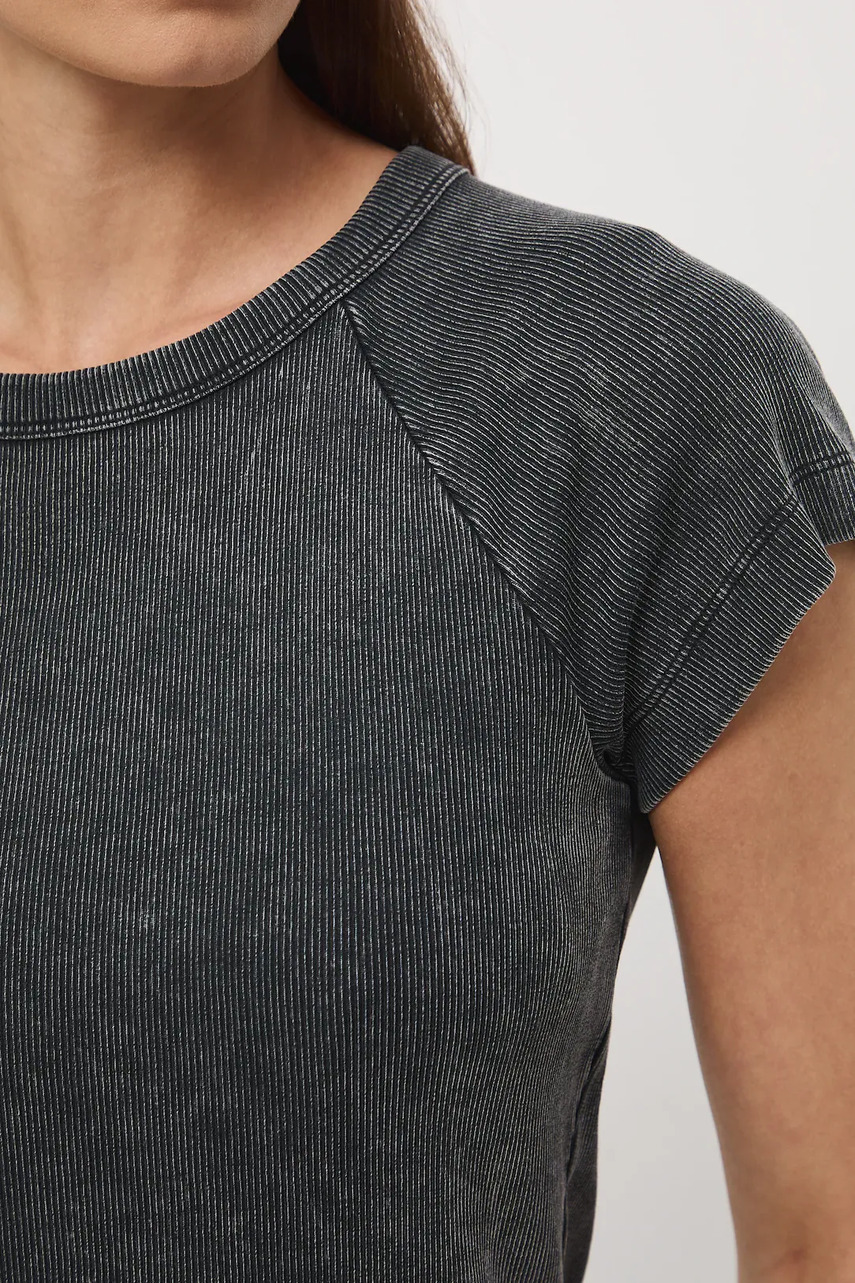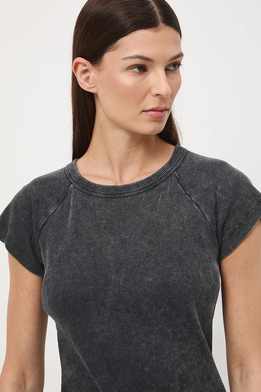 Покрой slim. - короткий рукав-реглан. - круглый Вырез. - трикотаж в рубчик.