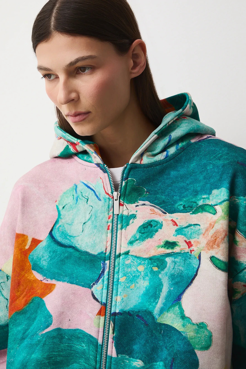 Кофта с капюшоном из специальной коллекции Eviva L'Arte. Модель с застежкой на молнию изготовлена ??из принтованного трикотажа.