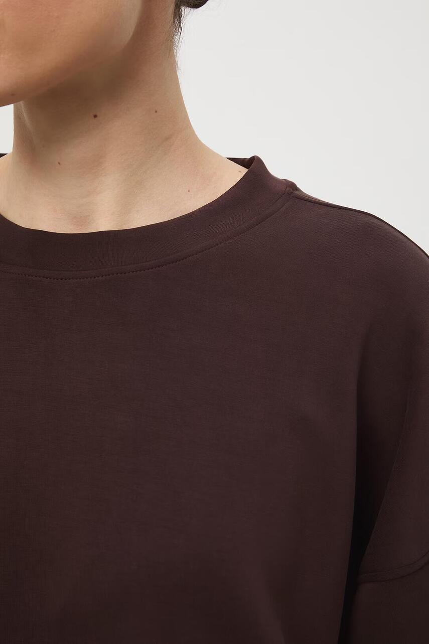 Крой oversize. - длинный рукав. - заниженная линия плеч. - круглый вырез. - отделка в виде стяжки. - гладкий трикотаж. - Трикотаж interlock плотного переплетения.
