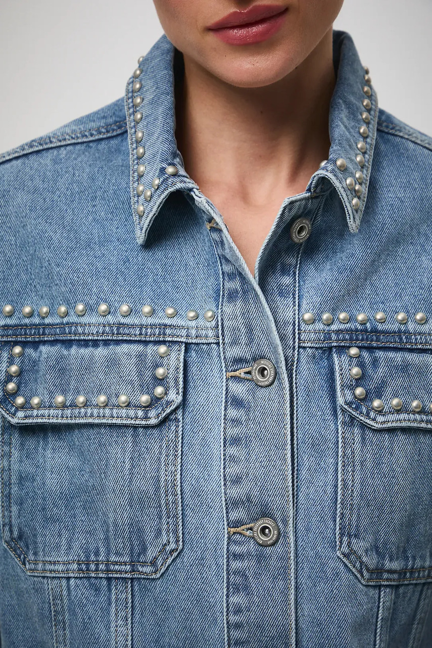 Крой oversize. - длинный рукав. - Манжеты на пуговицах. - модель с воротником. - Карманчики на груди. – застёгивается на пуговицы. - Декоративная драпировка на рукавах. - модель с заклепками.