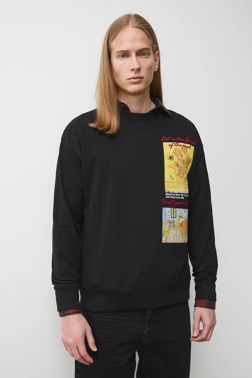 Крой regular. - длинный рукав. - заниженная линия плеч. - круглый, ребристый вырез. - отделка в виде стяжки. - модель с принтом и вышивкой. - Вышивка с надписью: Art is the flower of the soul. Paint your emotions. Make the invisible visible. Art becomes truth then it reflectes how you feel, no just what you see. - модель изготовлена ??из трикотажа типа french terry.