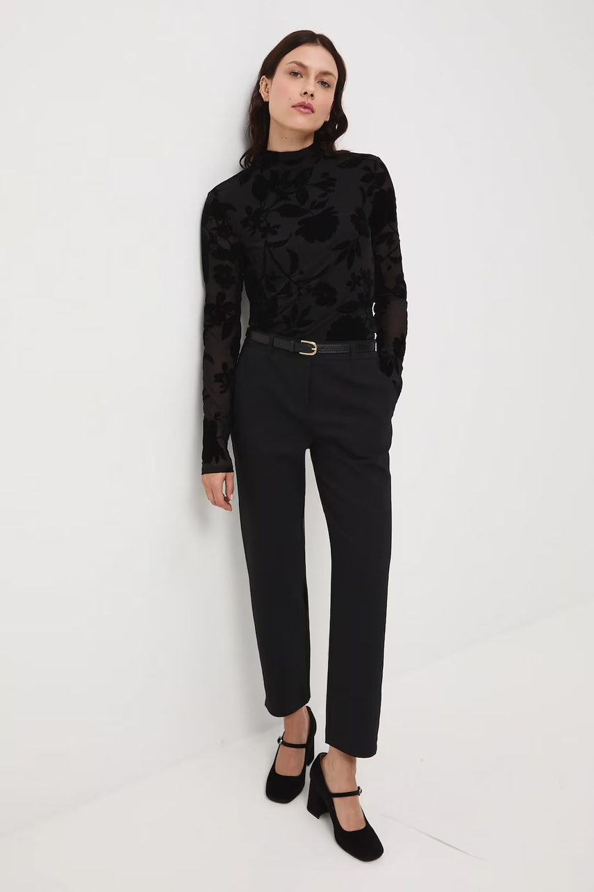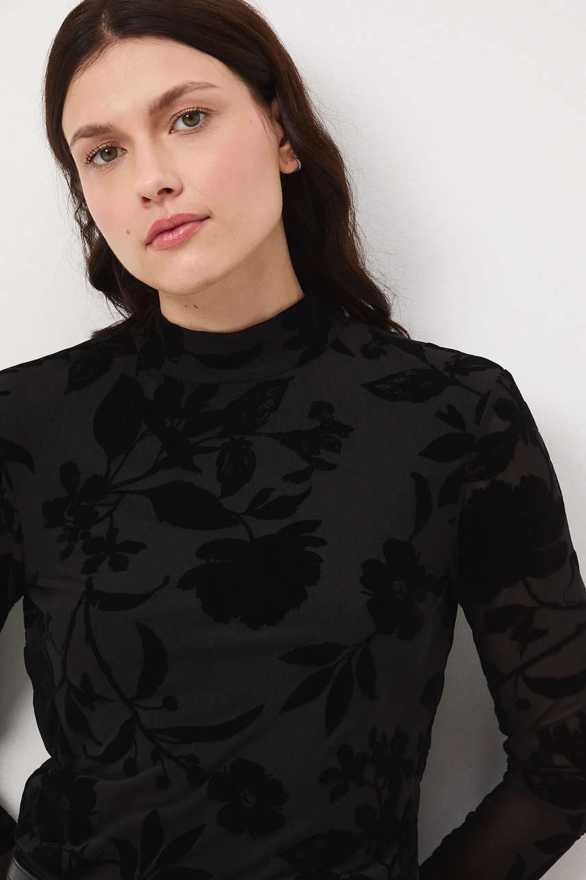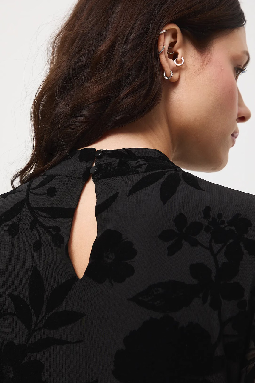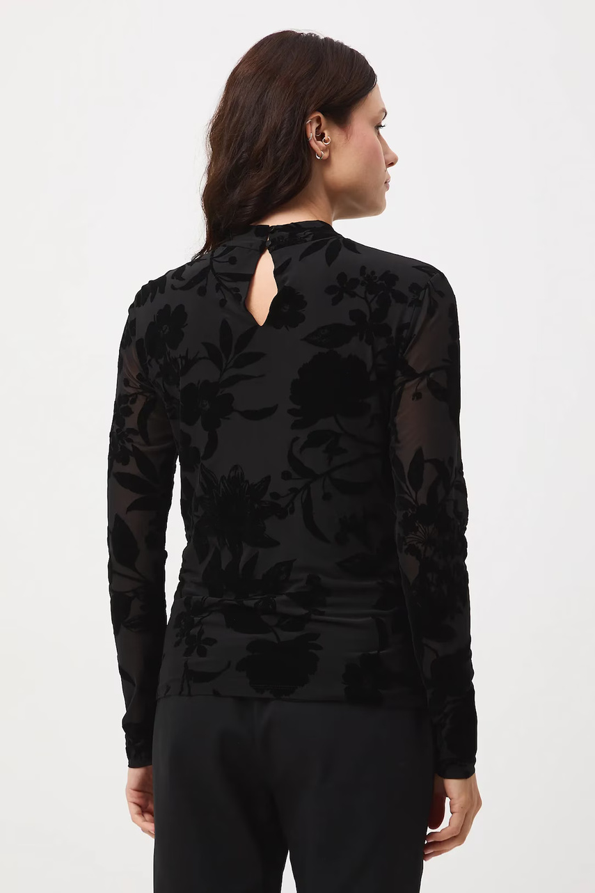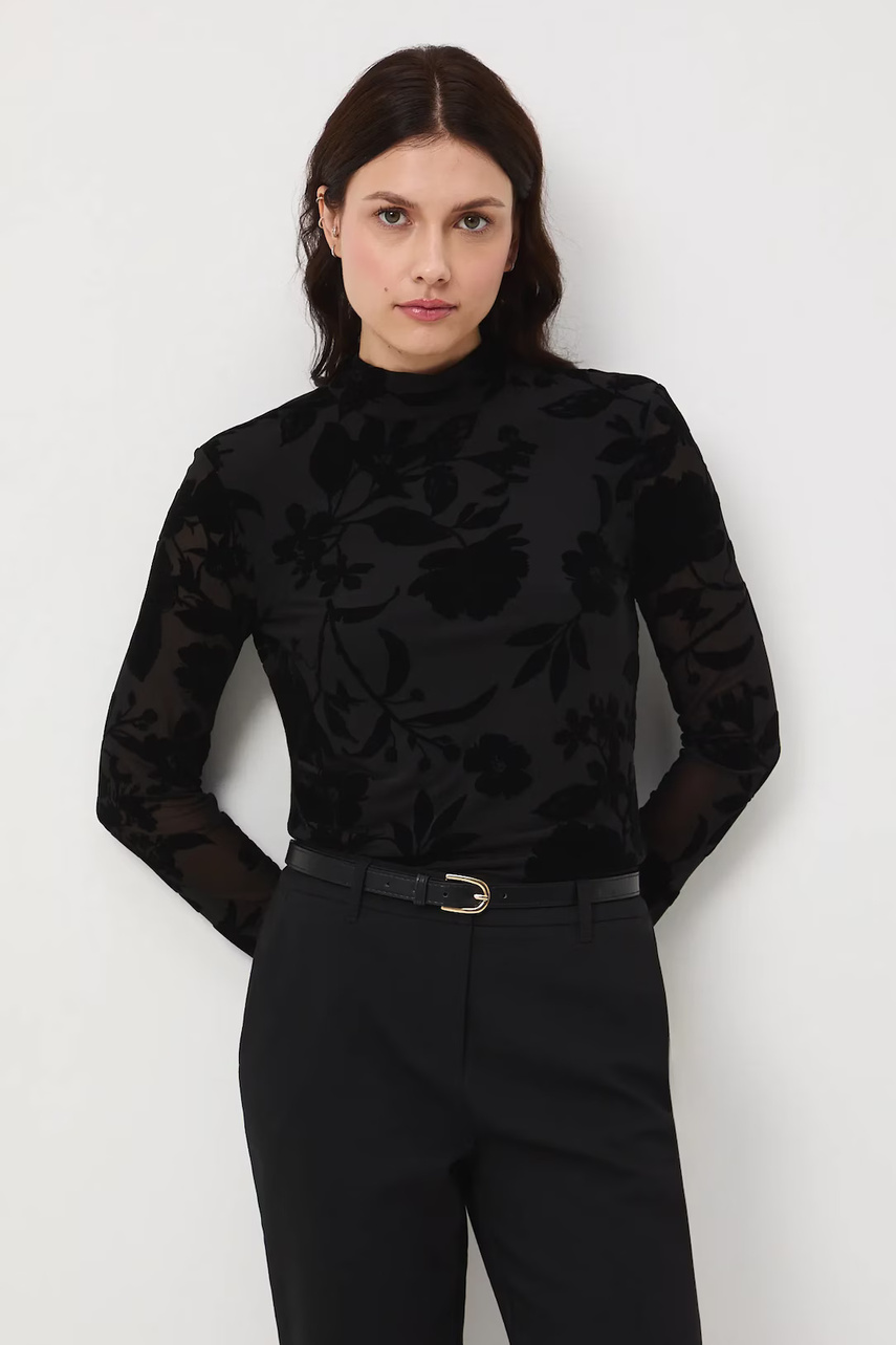 Фасон тонкий fit. - длинный рукав. - полугольф. - застежка на пуговицы сзади. - дополнительный слой материала в виде подложки. - растительный мотив.