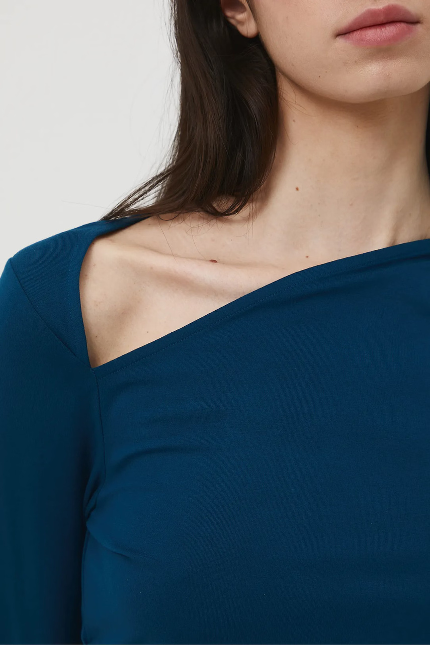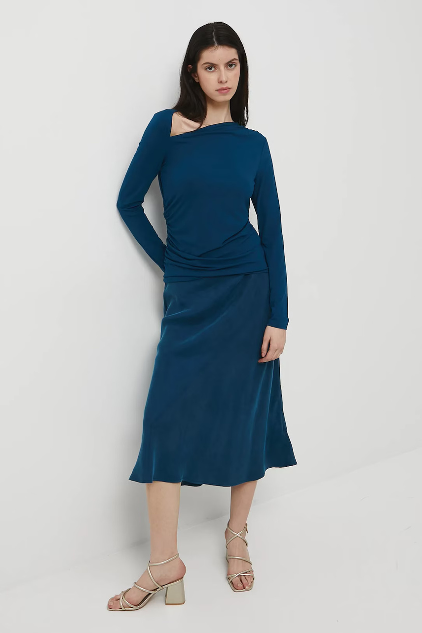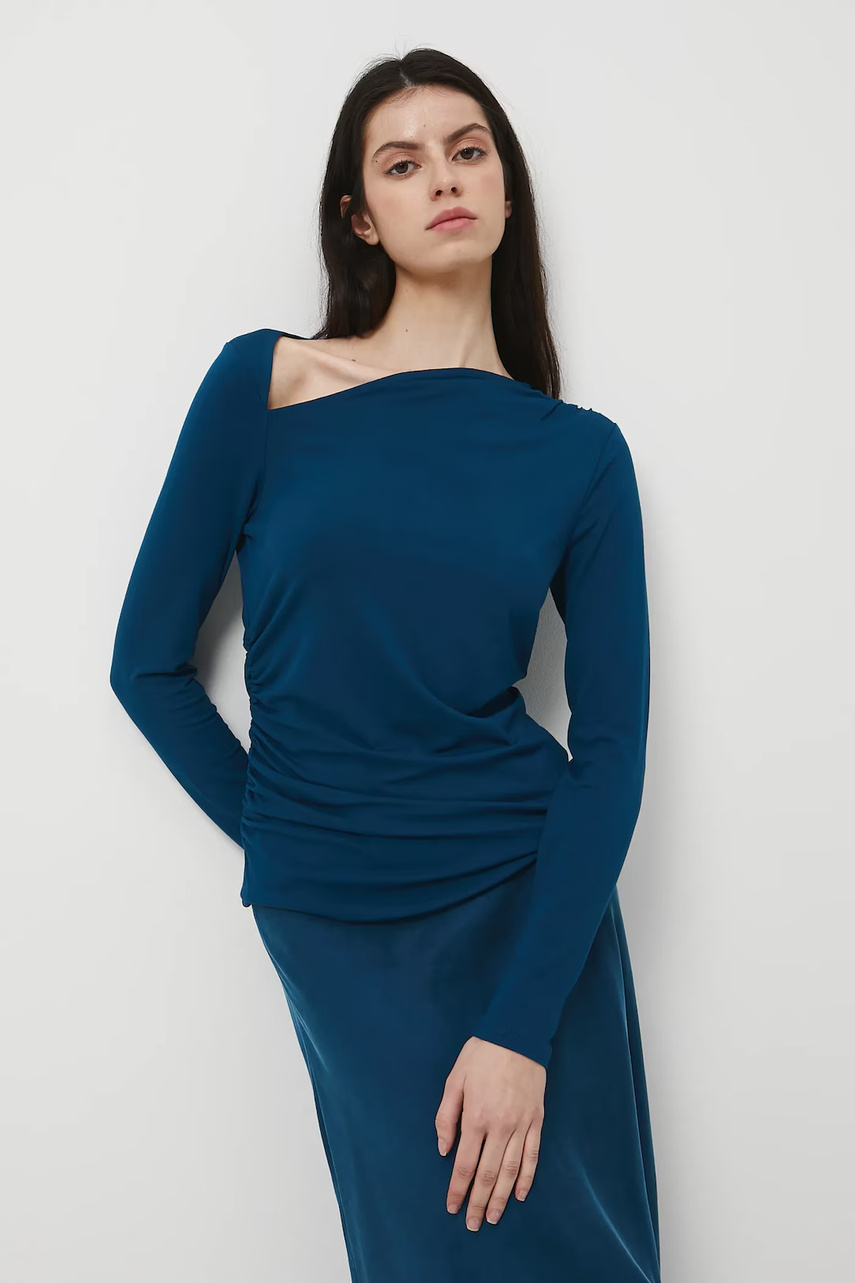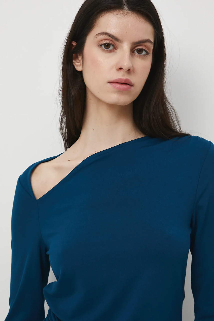 Фасон тонкий fit. - длинный рукав. - асимметричный Вырез. - Декоративная драпировка. - гладкий трикотаж.