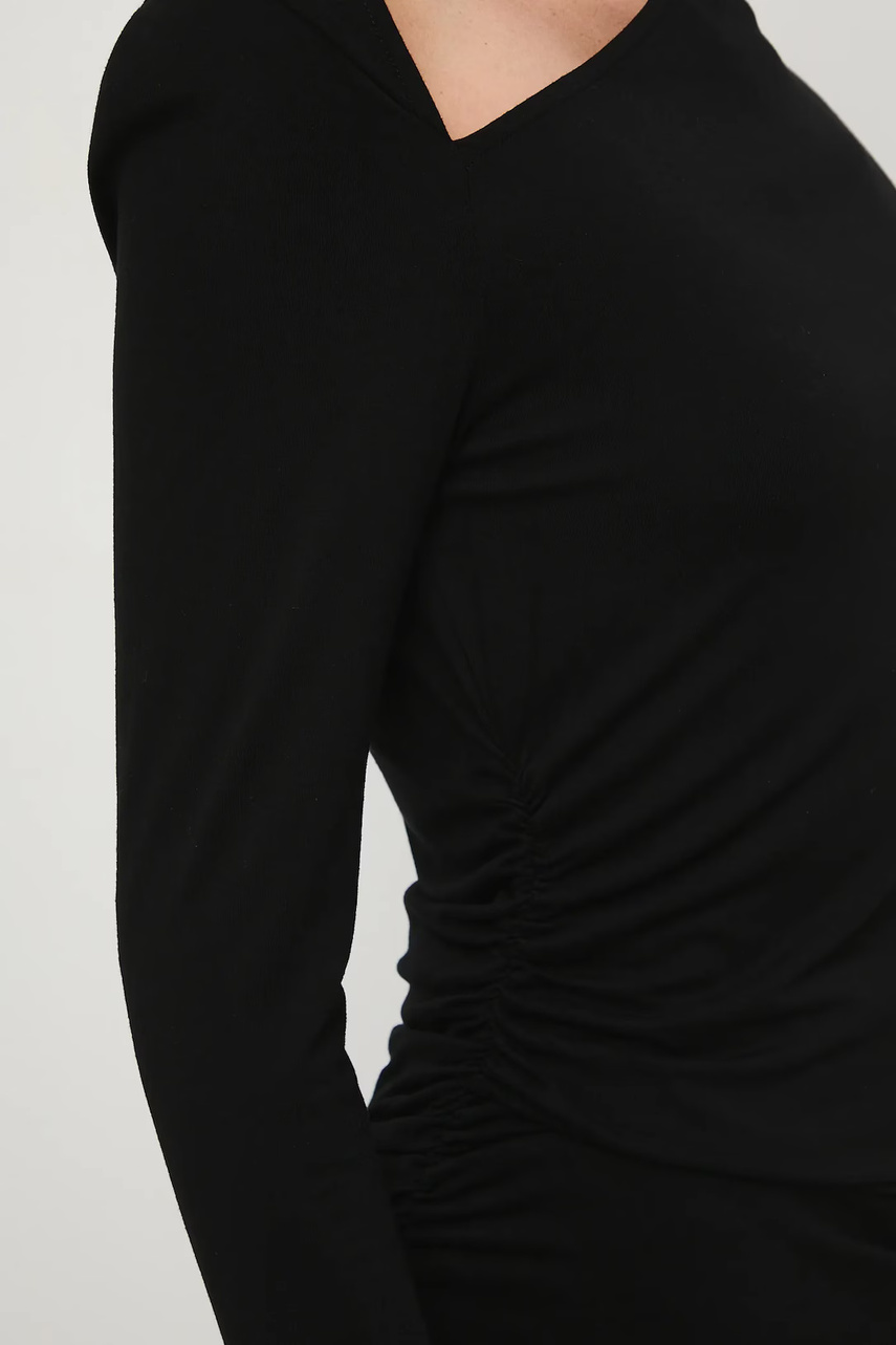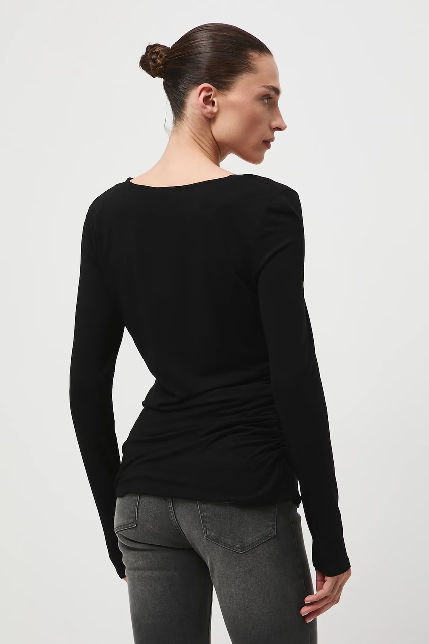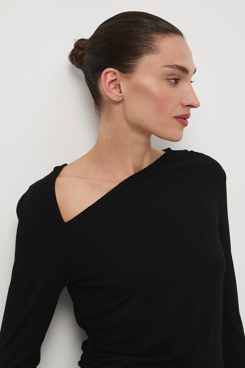 Фасон тонкий fit. - длинный рукав. - асимметричный Вырез. - Декоративная драпировка. - гладкий трикотаж.