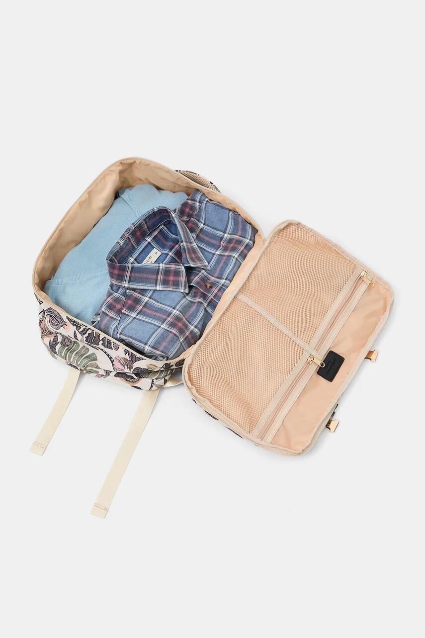 Практический туристический рюкзак подходит для путешествий и повседневного использования. - модель с тремя отделениями. – застёгивается на молнию. - Спереди карман на молнии. - Переднее отделение рюкзака имеет карманы на молнии и накладные карманы для надежного хранения мелких вещей. - Прозрачный карман на молнии, например для косметики или туалетных принадлежностей. - Основное отделение открывается плоско (как чемодан), что облегчает доступ к содержимому. - Имеет три внутренних кармана на молниях, два из которых сделаны из сетки. - Имеет отдельное отделение для ноутбука или застегивающегося на молнию планшета. - регулируемые компрессионные ремни по бокам. - Два прорезных боковых кармана. - короткая ручка. - регулируемая длина ремешков. - Рюкзак оснащен ремнем, позволяющим прикрепить его к ручке чемодана. - скрытый карман на молнии на внутренней стороне пояса. - задняя панель с мягкими сетчатыми элементами. - модель с подкладкой. - рассчитана на формат А4. - дизайн с цветочными и животными мотивами.