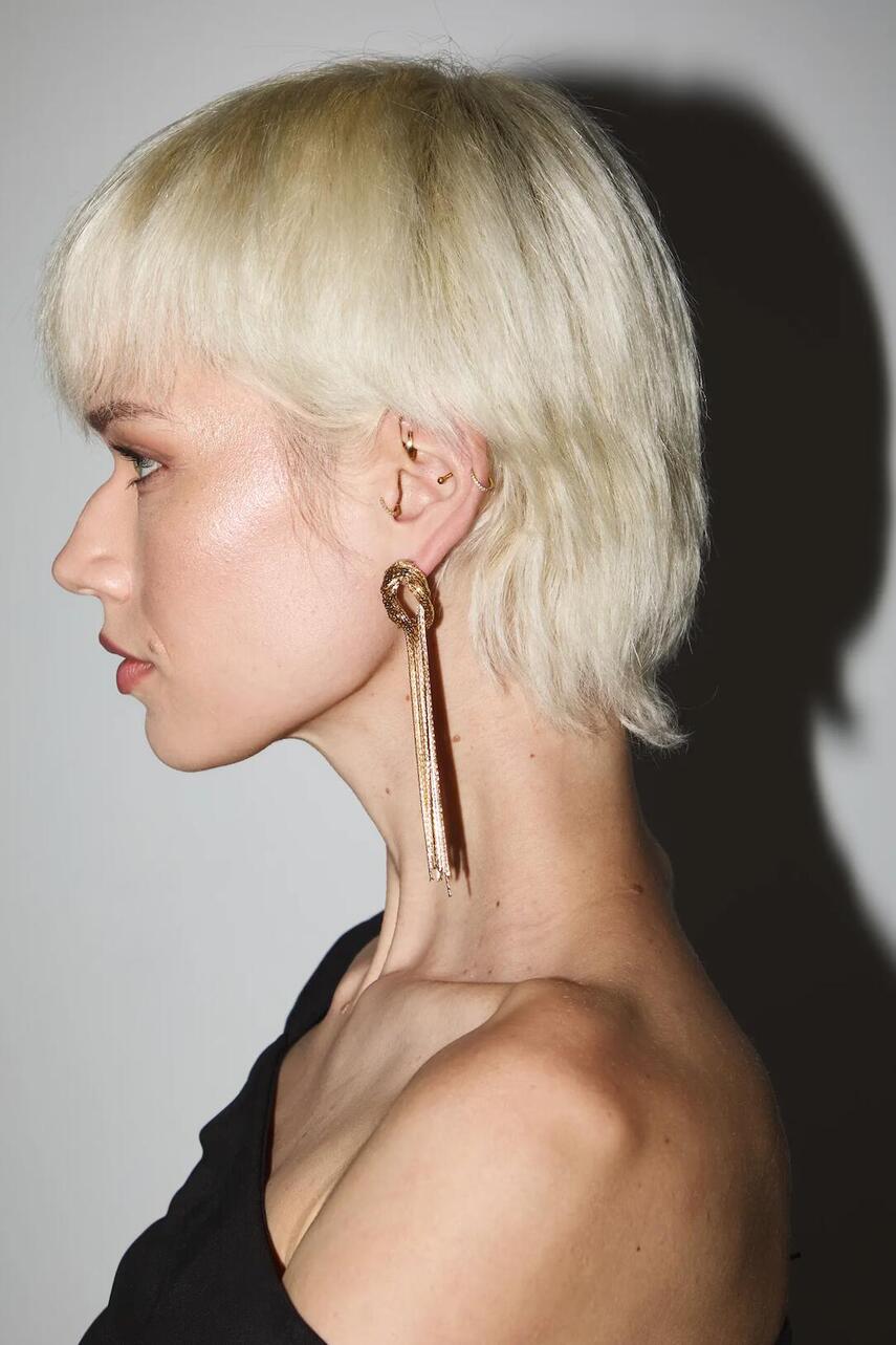 Серьги из коллекции Medicine. Модель с декоративными цепочками изготовлена ??из сочетания металла и нержавеющей стали.