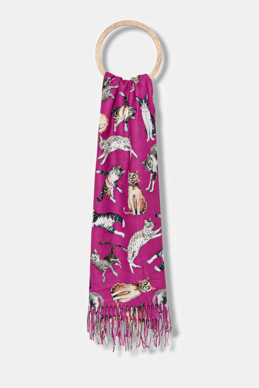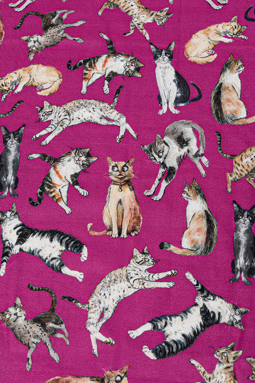 Ткань средней толщины. - модель с декоративными кистями. - узор в виде кошек.