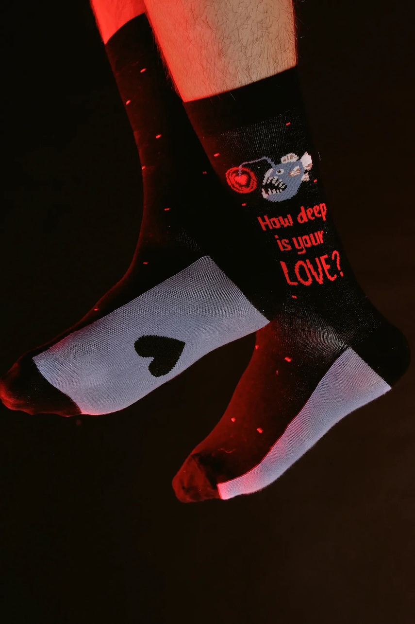 Количество пар в наборе: 2. - Модель с надписью: How deep is your love? - животный мотив.