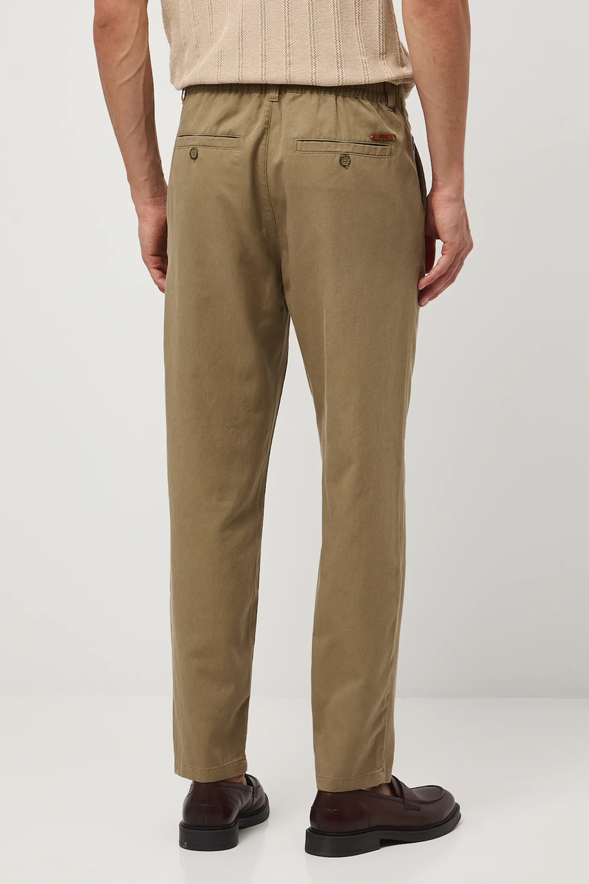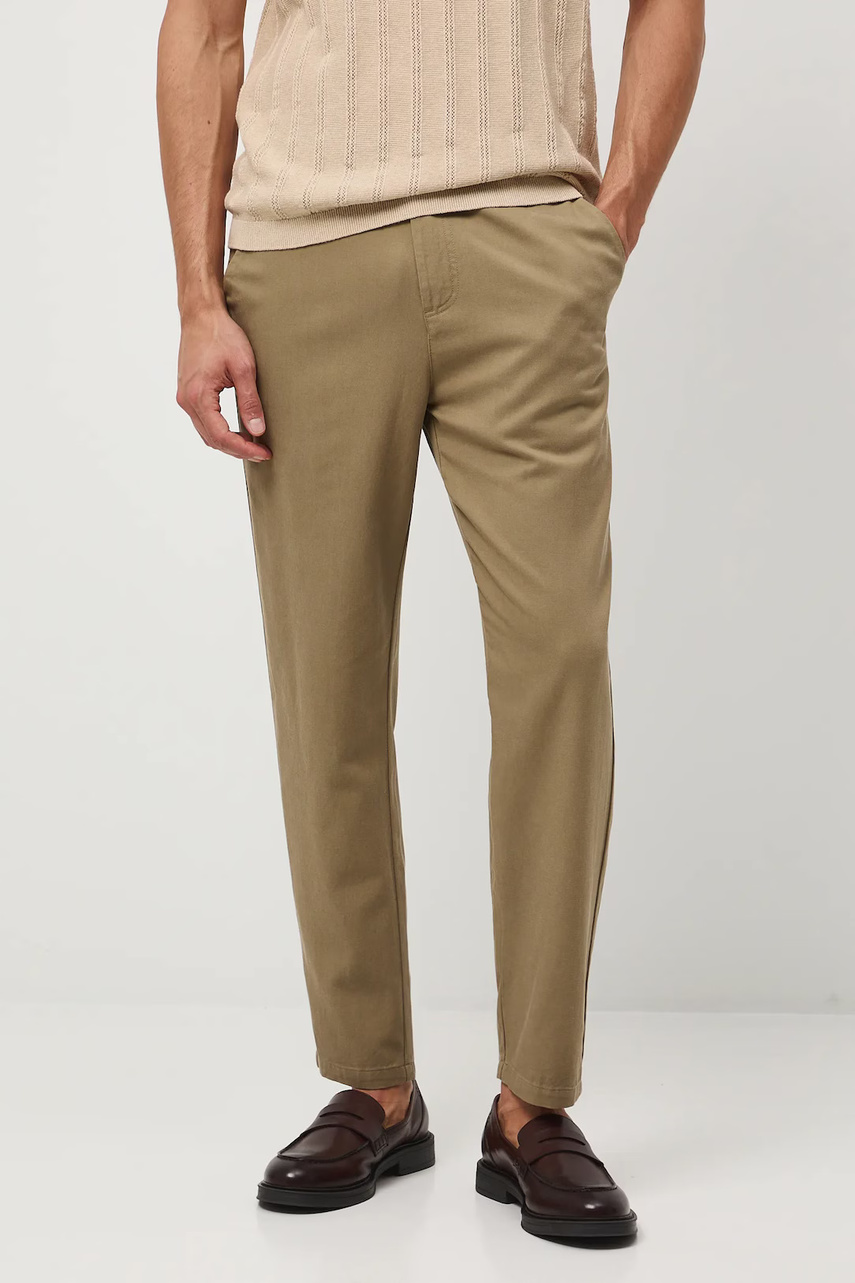 Фасон chino. - Для брюк характерны косые карманы – они идеально вписываются в стиль smart casual. - Модель с регулярной талией и застежкой на пуговицы и молнию. - Прорезные карманы. - ткань с саржевым переплетением. - гладкая ткань.