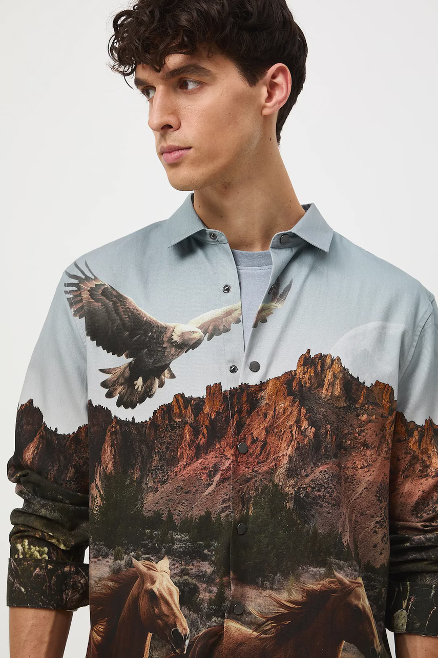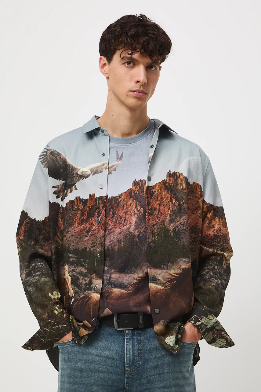 Рубашка из коллекции Medicine. Модель изготовлена ??из принтованной ткани. Имеет классический, слегка жесткий воротник.