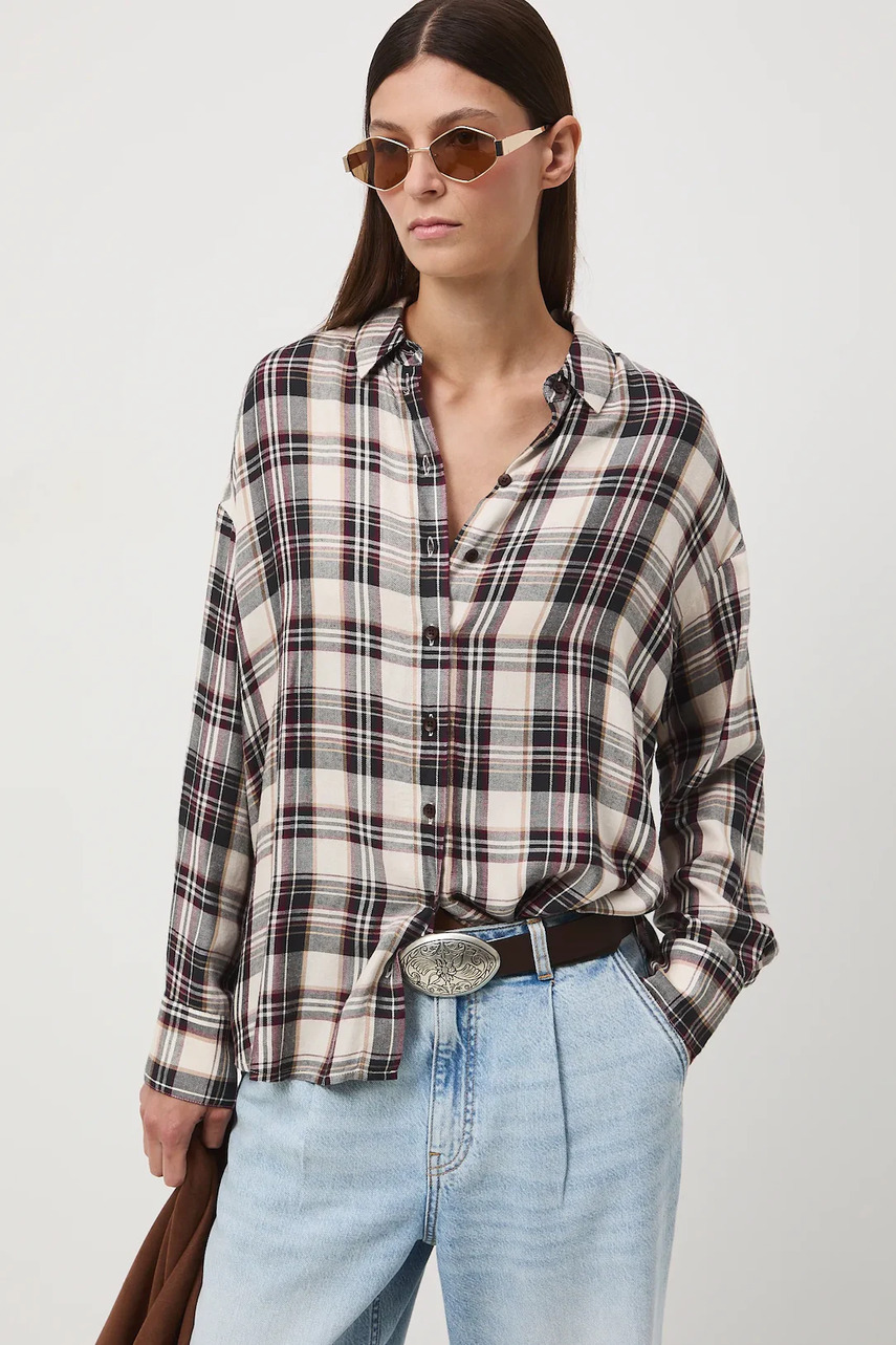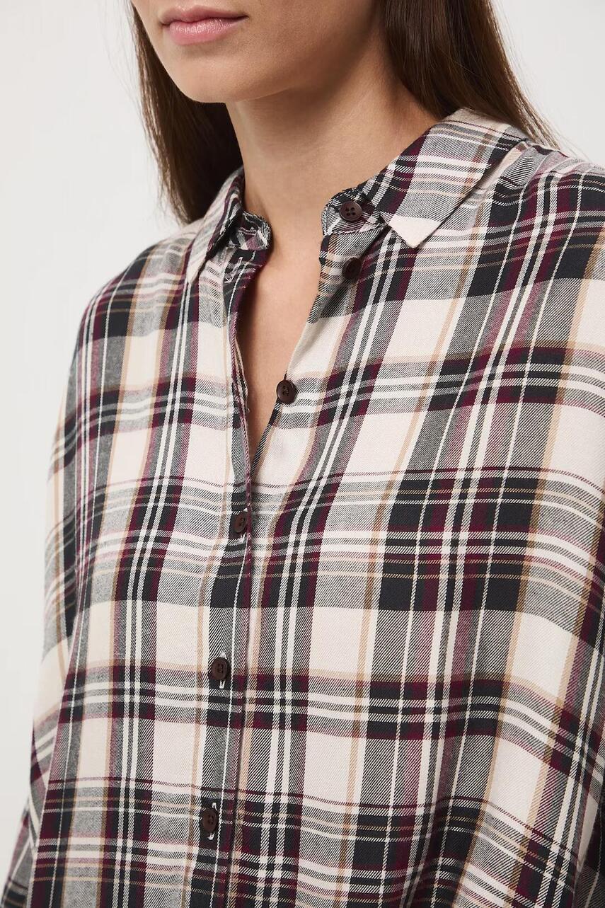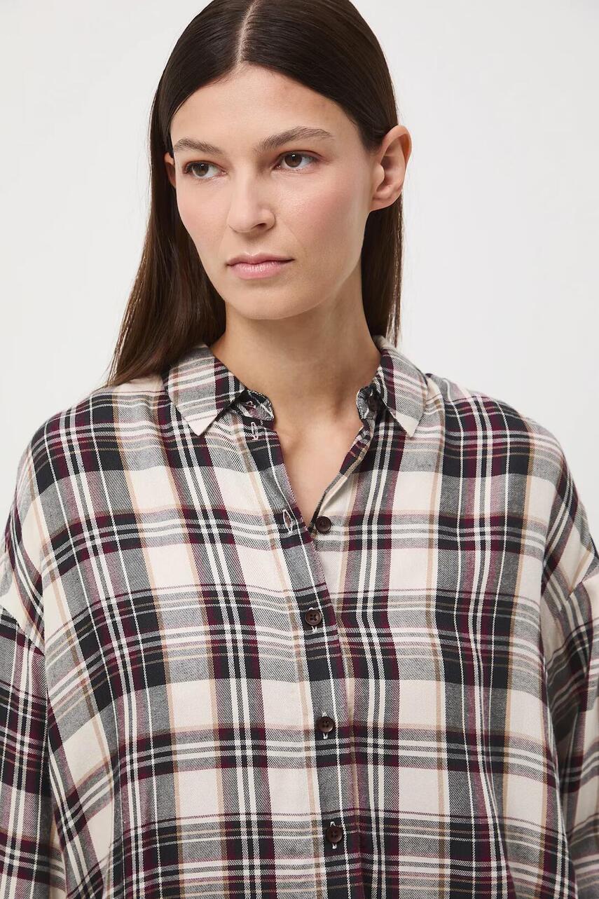 Крой oversize. - длинный рукав. - заниженная линия плеч. - Манжеты на пуговицах. – застёгивается на пуговицы. - модель с воротником. - клетчатый узор.