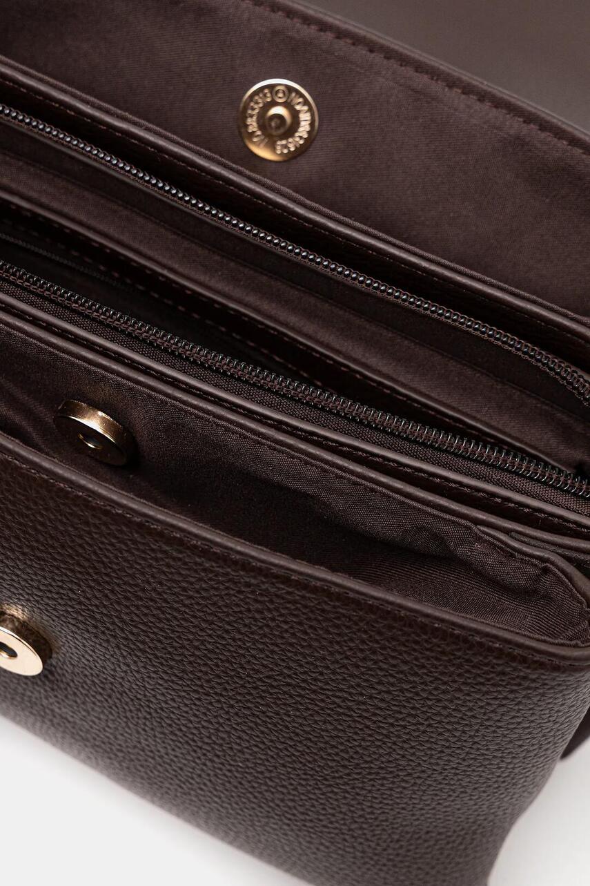 Середнього розміру сумочка з колекції Medicine. Застібна модель виготовлена з поєднання екошкіри та синтетичного матеріалу.