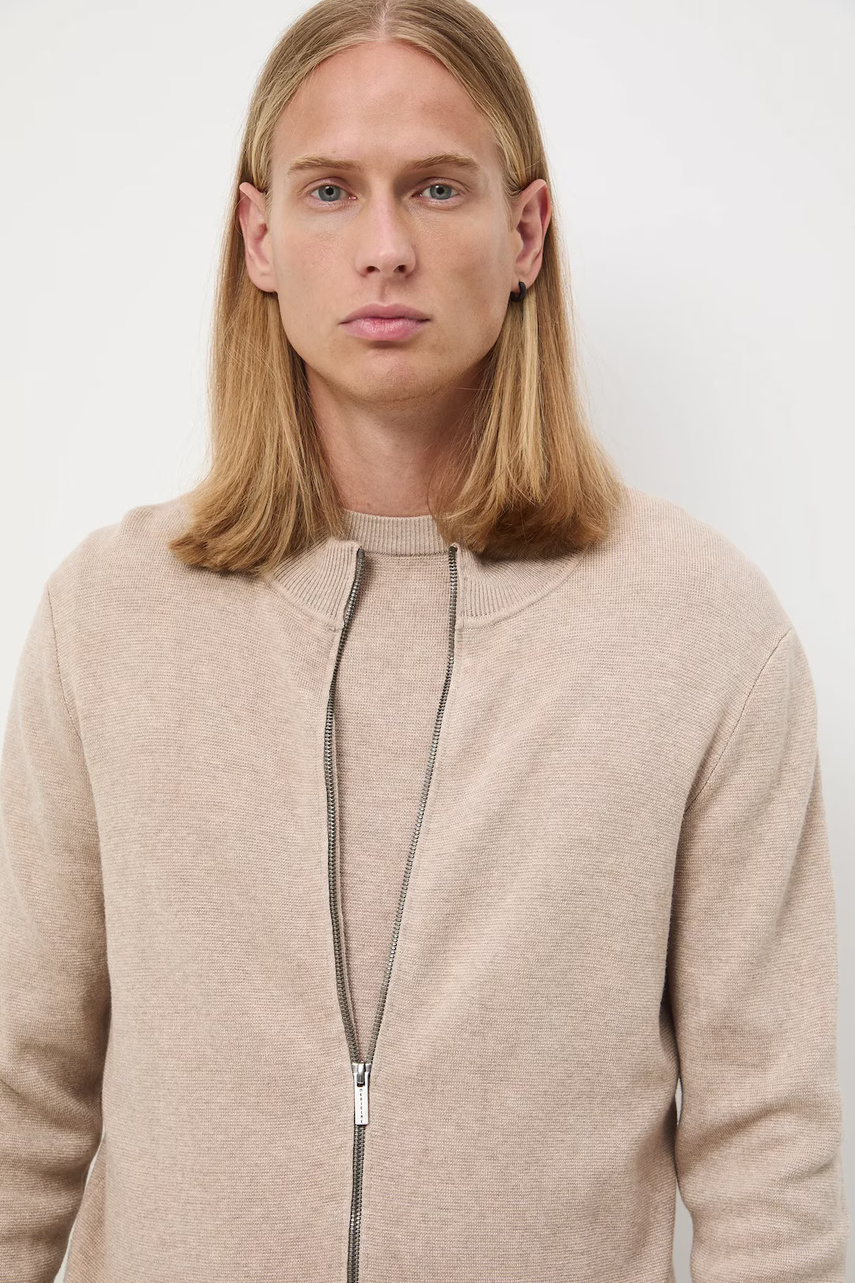 Кардиган из коллекции Medicine. Модель с полугольфом сделана из меланжевого трикотажа.