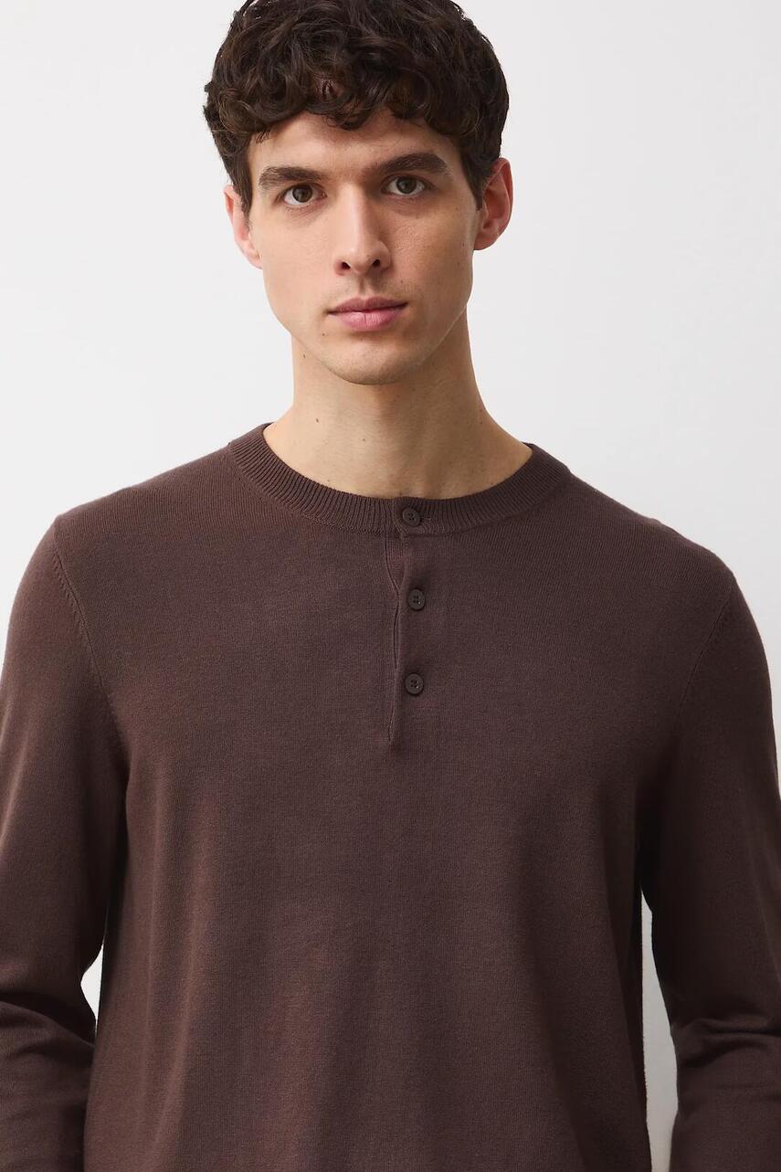 Свитер фасона regular создает комфортный и универсальный образ. Он мягко облегает фигуру, не подчеркивая ее. Классический и простой, он подойдет как элегантному, так и повседневному аутфиту. - длинный рукав. - круглый вырез. - короткая застежка на пуговицах. - отделка в виде стяжки. - гладкий трикотаж.