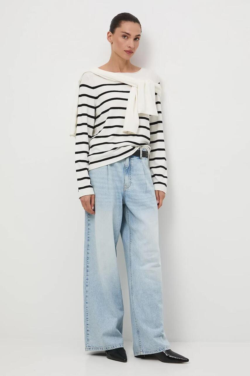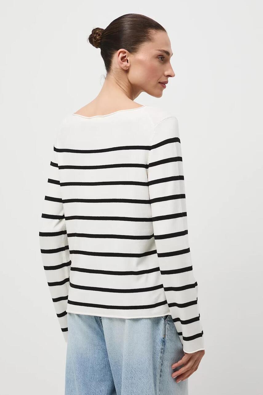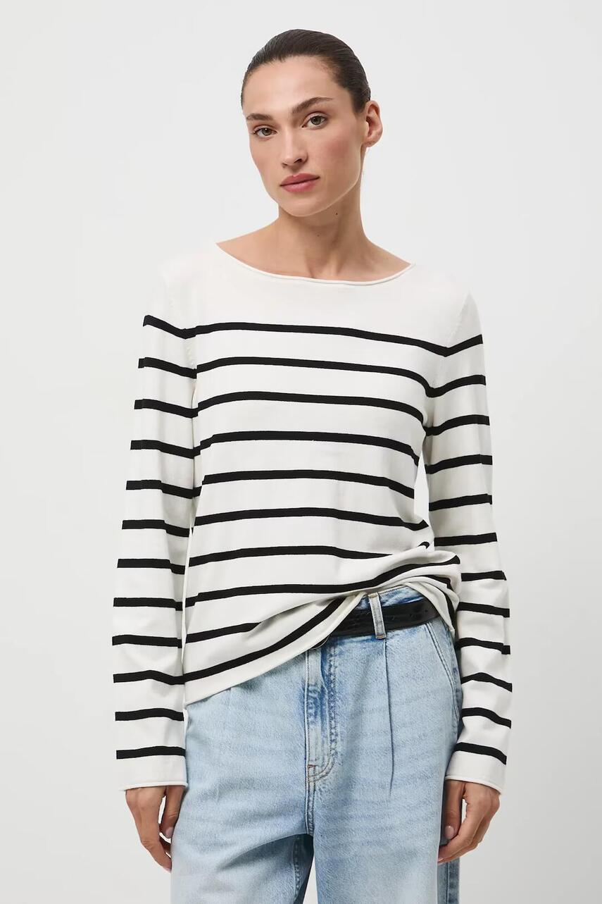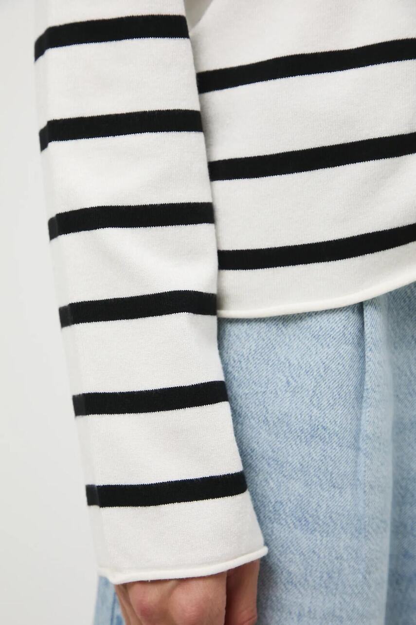 Крой regular. - длинный рукав. - круглый вырез. - необработанные края. - полосатый узор.