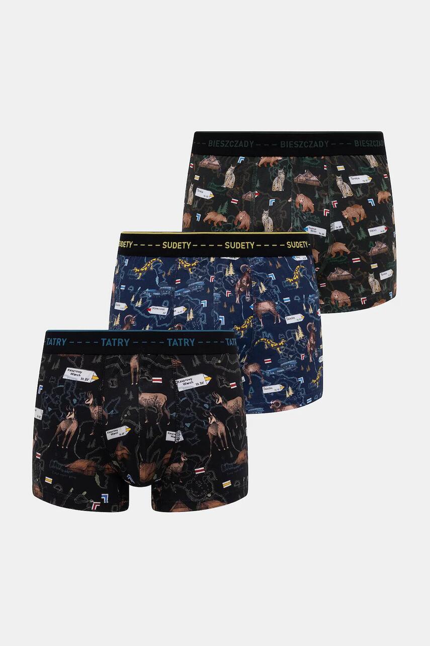Количество пар в наборе: 3. - Принтованный трикотаж. - модель с надписью: Bieszczady, Sudety, Tatry. - узор с анималистическим мотивом. - узор с горным мотивом.